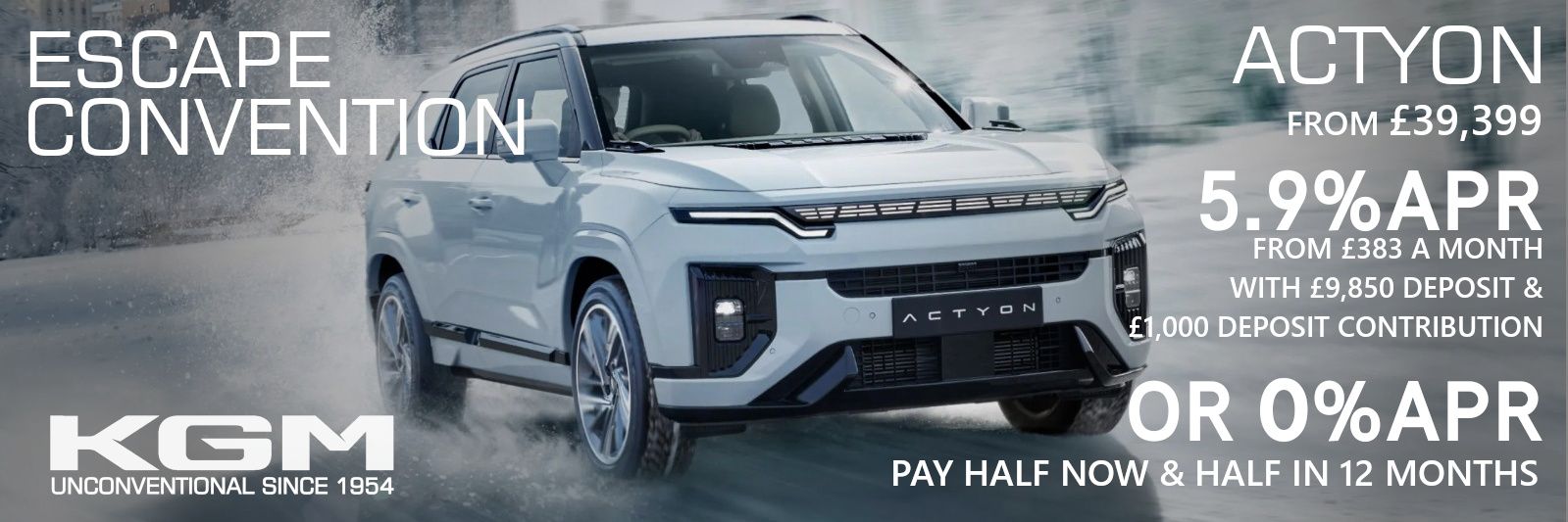 KGM Actyon — Pay Half Now, Half in 12 Months 0% APR | £1,000 Deposit Contribution
